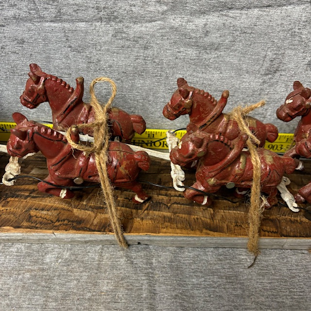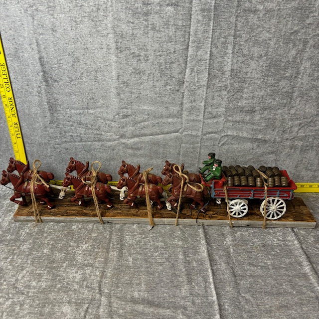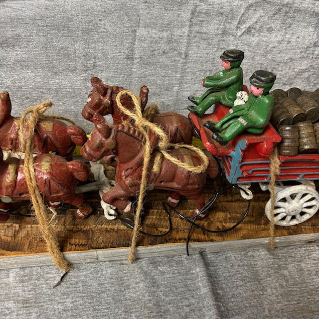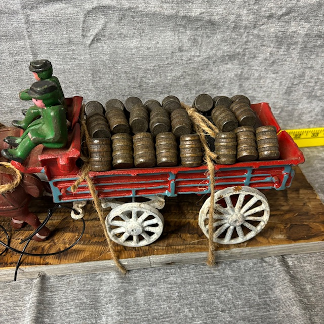 Vintage Cast Iron Beer Delivery Horse Drawn Wagon