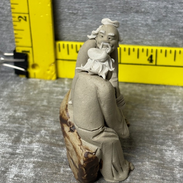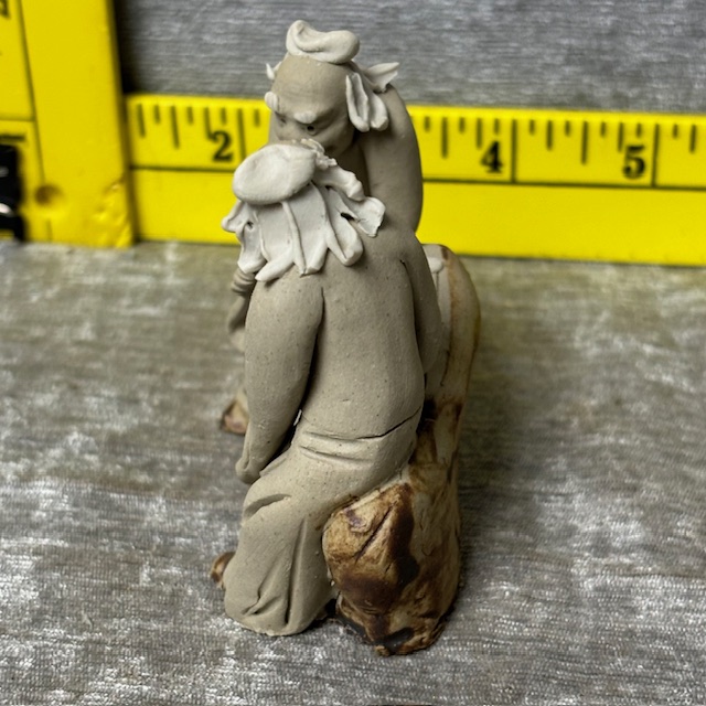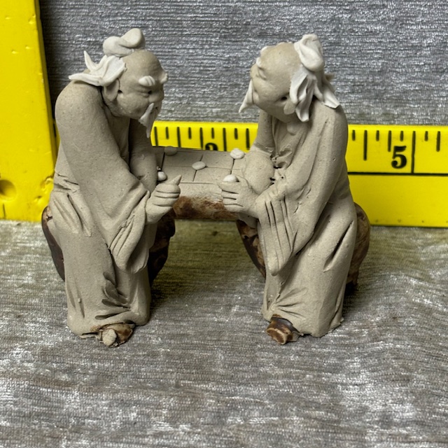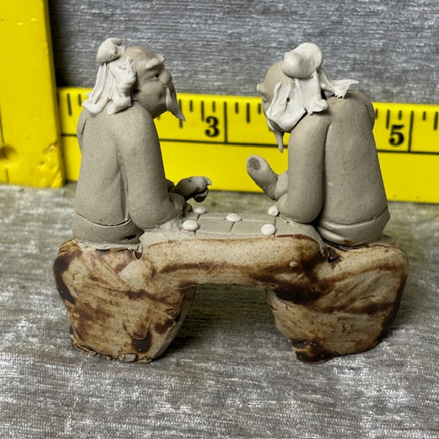 Vintage Chinese Madman 2 Men Sitting Clay Figurine